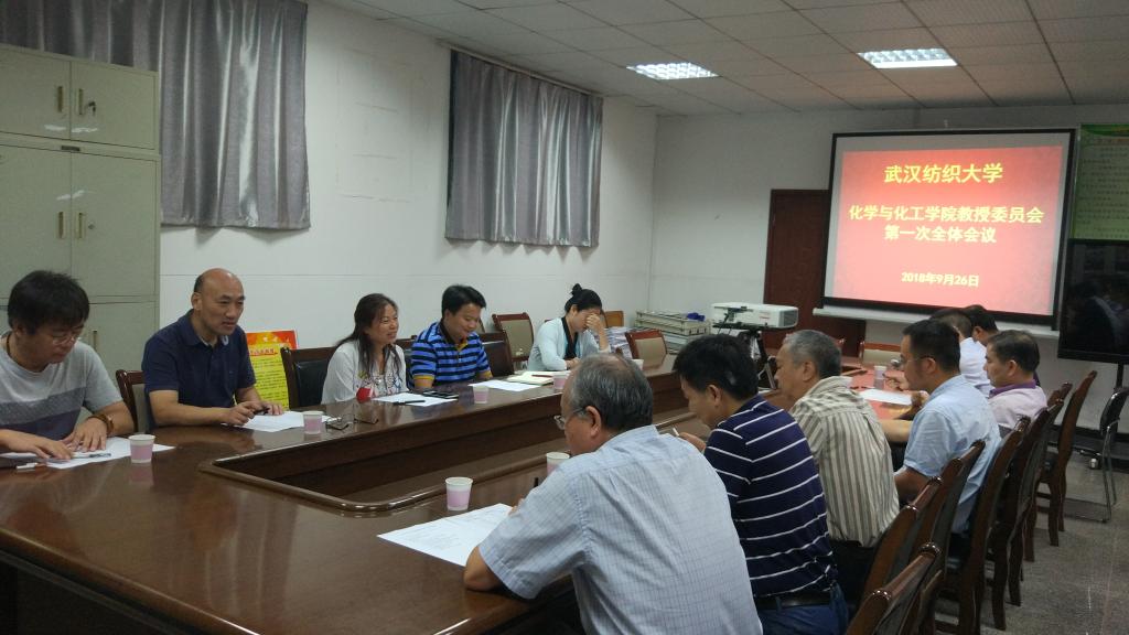 院长李伟代表学院向教授委员会传达了《tyc8722太阳集团城二级院(部)教授委员会组建指导意见》(武纺大[2018]2号)文件精神,通报了全院教职工大会选举出的教授委员会委员名单。