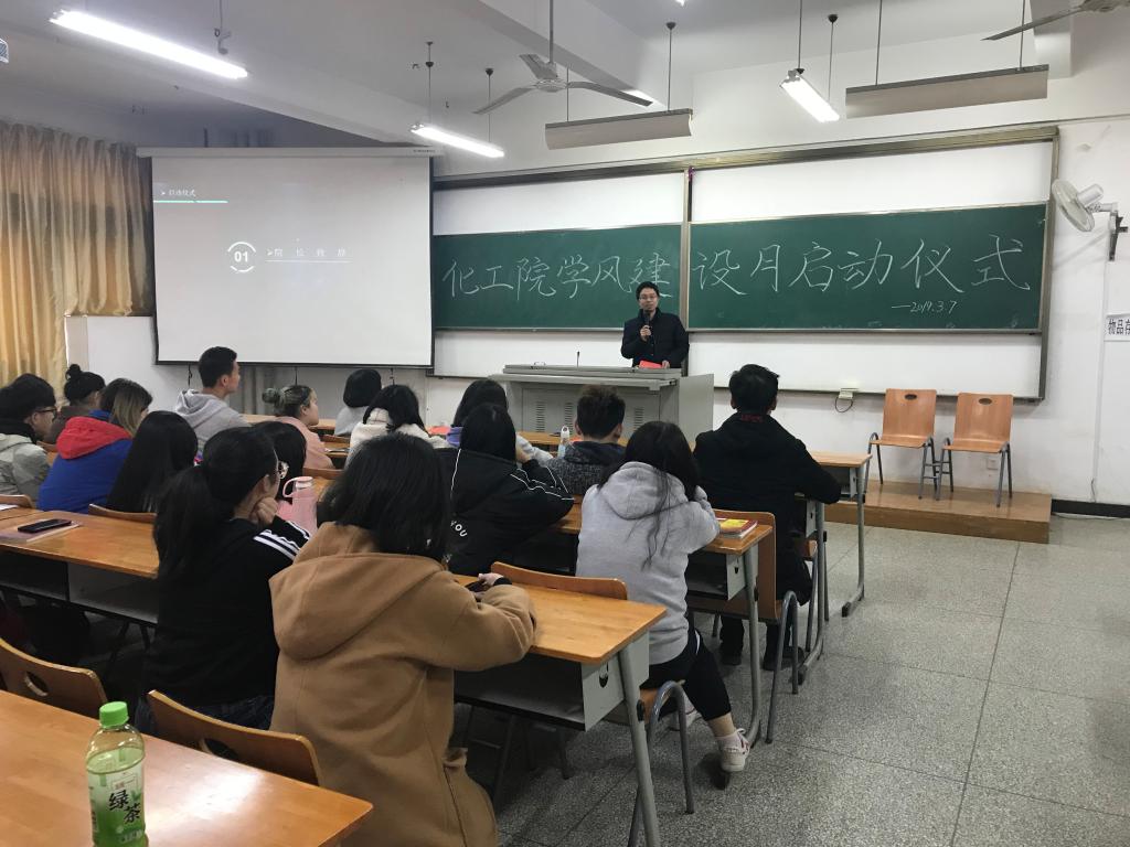 启动仪式伊始,院学生会实践部部长刘佳介绍此次学风建设月的相关活动安排,学生会将在学风建设月成立学风督查小组,继续坚持并加大课堂考勤力度。学院将举办一系列多种多样的活动,如化学实验竞赛、考研交流会、四六级交流会、十佳学子评选、学习先锋宿舍评选。这些活动旨在为学院学生提供交流平台,以达到以赛促学,评优秀树榜样的目的。