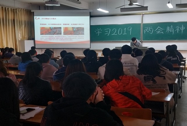 年级大会上,同学们在辅导员的带领下,通过PPT了解了两会召开的意义、2019年两会基本情况、两会八大看点、全国政协工作报告。同时学习了湖北省委书记蒋超良发出的《书写新时代高质量发展的湖北答卷之声》。16级学生谢良科谈道:“两会对过去一年的工作进行总结,对未来一年的工作规划目标,作为学生也应当勤总结,远规划,扎实专业知识,丰富专业技能,不断完善自身发展,努力成为合格的社会主义建设者、接班人。”
