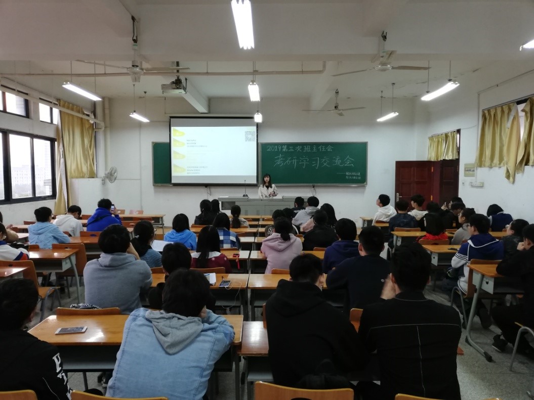 3月10日下午18:00,18级班主任于志财、何华玲老师于崇礼楼401教室共同组织开展“考研学习交流会”活动。动员会由11801班主任于志财老师主持,轻化11801与轻化11802全体同学参加了此次活动。