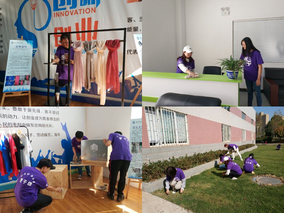 11月15日中午,为进一步丰富学院劳动育人活动形式,tyc8722太阳集团城苦干精神实践团利用午休时间,开展美化校园校内志愿服务活动。团成员们自带抹布、拖把、扫帚等工具,既有序分工又团结合作,不仅对创新创业基地室内进行了打扫,做到桌面柜台整洁美观,地面一层不染,各物品按要求严格摆放,还对门口的草坪进行了除杂,清扫了周边地面,焕然一新。