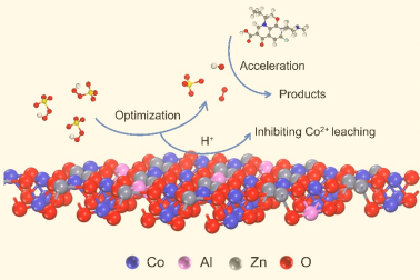 工业化过程中产生的不可生物降解有机污染物具有广泛存在、环境持久性和生物蓄积性等特点,对饮用水、地表水质量和人类健康产生重大影响。基于PMS的高级氧化技术应用为有机污染物的净化提供了一种很有前途的水处理技术。在非均相PMS活化体系中,Co-3d过渡金属基催化剂(如ZnCo2O4)表现出优异的催化性能。然而,PMS的分解过程会导致大量的H+释放,导致钴基催化剂因蚀刻而严重的钴浸出。这不仅造成了二次污染,而且影响了钴基催化剂的稳定运行,极大地阻碍了钴基催化剂的实际应用。对此,课题组提出了通过引入Lewis酸位点(Al3+)增强氧相关活性物质的吸附和稳定活性位点的策略,从而有效提高PMS的吸附能力,抑制Co离子的浸出。