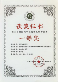 2024年11月1日,第二届全国大学生化妆品创新大赛在北京工商大学良乡校区圆满落幕,由太阳城官网师生组成的参赛队伍共获得一等奖2项、三等奖2项的好成绩。琚海燕老师、吕永钢老师和李泽豪老师荣获优秀指导教师奖。