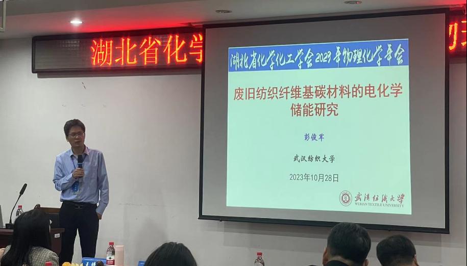 太阳城官网彭俊军老师在物理化学学术论坛以“废旧纺织纤维基碳材料的电化学储能研究”为主题进行汇报,与各专家学者进行交流。