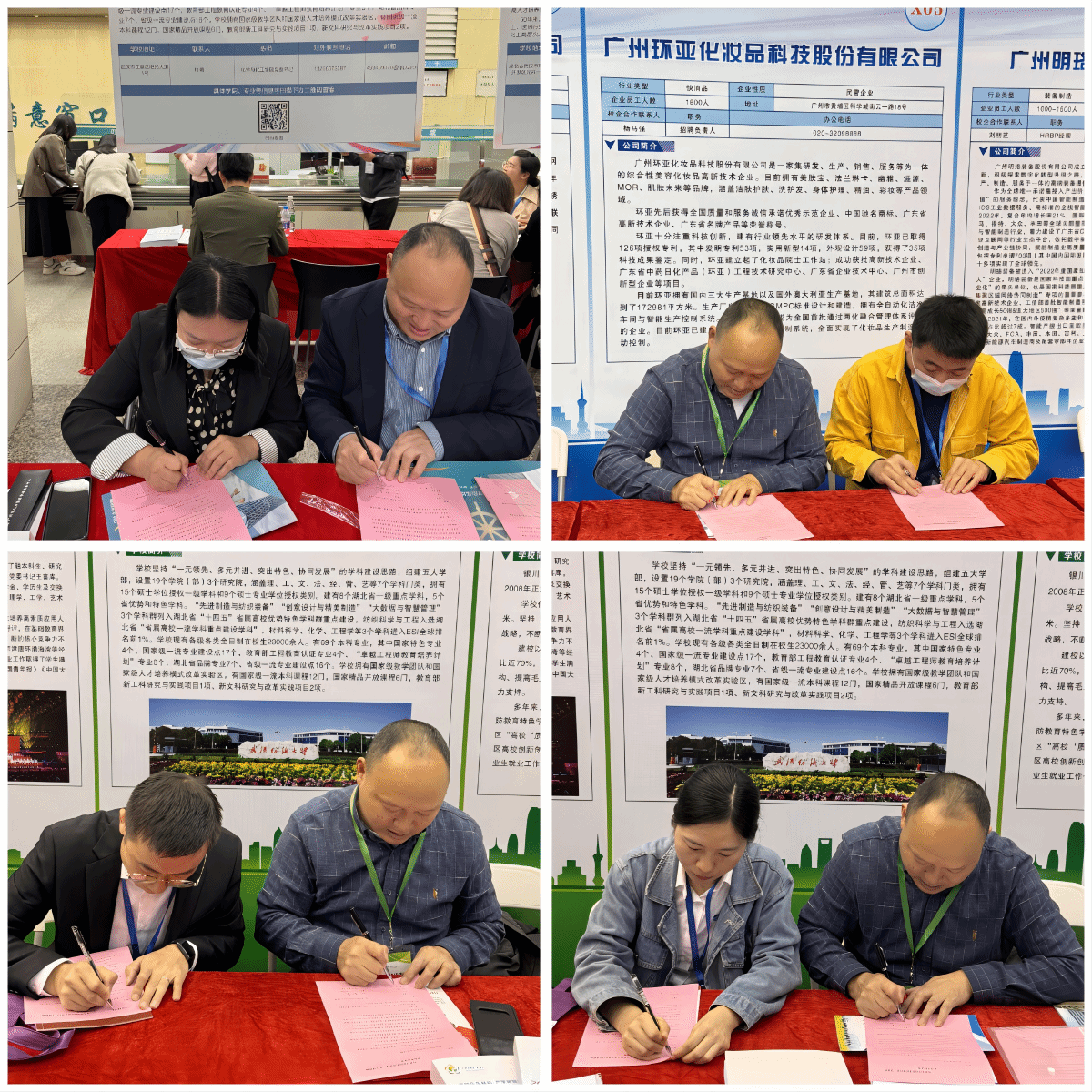 杜勇谈到参与本次洽谈会表示,此次签订校企合作协议书的四家企业中,广州环亚化妆品科技股份有限公司用人需求和学校化学相关专业毕业生生源非常匹配,是很难得的合作机会。通过参与线下合作洽谈会的方式,打通了校企合作、产业与人才对接服务的“最后一公里”,在极短的时间段内能够直接邀请多家企业来校开展进一步招聘工作,合力共促2024届毕业生高质量就业。