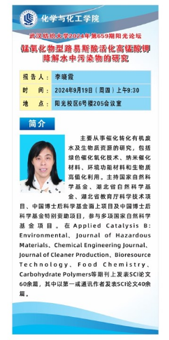 9月19日上午,tyc8722太阳集团城在阳光校区6号楼205会议室举办了学校第659期阳光论坛,李晓霞教授做了题为《锰氧化物型路易斯酸活化高锰酸钾降解水中污染物的研究》的学术报告,学院教师及研究生代表参加了本次学术论坛。