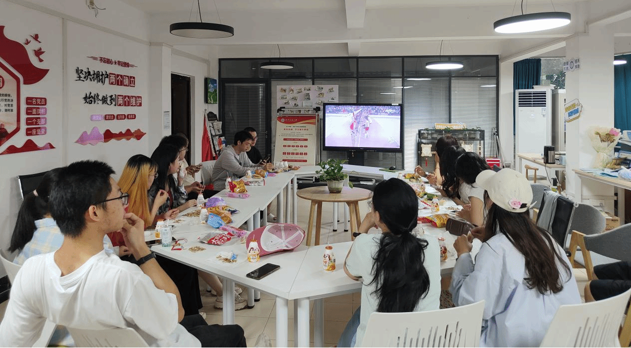 活动当日转播了奥运会赛事。屏幕上,运动员们奋力拼搏、挑战极限的身影,不仅传递了体育精神的力量与美,也点燃了在场师生心中的激情与热血。不仅让大家享受到了竞技体育带来的震撼与感动,更在无形中增强了大家的集体荣誉感和积极向上的生活态度。观影后导师们跟学生讨论赛事的紧张和挑战,引导学生正确面对科研实验中的挫折。