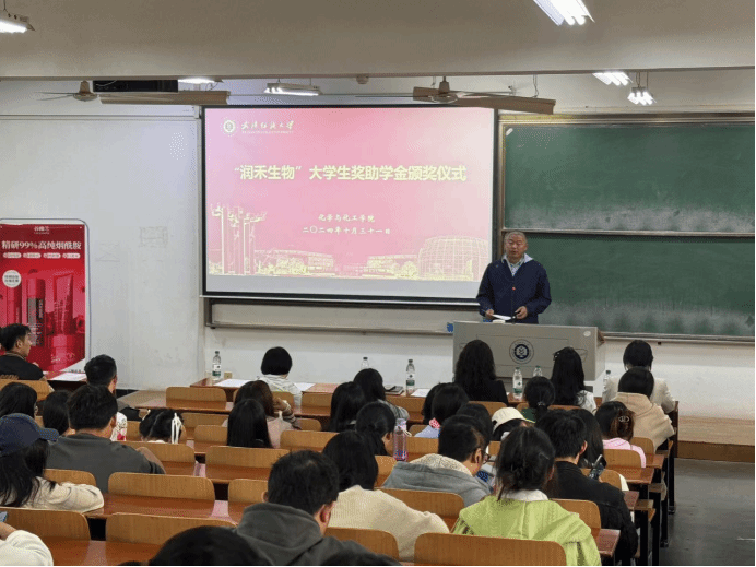 10月31日下午,tyc8722太阳集团城在03-120教室举行“润禾生物”大学生奖助学金颁奖仪式。武汉润禾生物医药有限公司董事长葛皓玲、学院党委副书记莫德辉、化妆品技术与工程系主任吴剑虹出席活动。