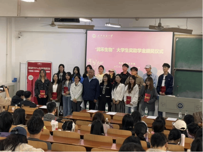 武汉润禾生物医药有限公司成立于2003年,迄今已有20年的发展历史,系武汉市东西湖区生物医药高新技术企业,同时也是集科研、生产加工、销售于一体的现代化企业。公司长期致力于中药皮肤外用软膏、皮肤外用维生素系列功能性护肤品、医疗器械等领域的研究开发、应用及生产销售。2023年该公司与太阳城官网签订资助协议,并设立总额为100000元企业奖学金。经过校企双方共同评审认定,今年有17位综合成绩优异的学生被授予“润禾生物”大学生奖助学金。