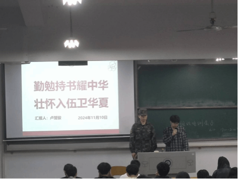 本次活动覆盖各个年级,通过班会、政策宣讲和朋辈交流等多种形式,确保征兵宣传深入人心。11月3日至11月10日期间,各班级纷纷召开以征兵为主题的班会,班主任和辅导员们围绕“携笔从戎锤炼英雄本色,建功军营忠诚报效祖国”这一主题,通过生动的案例和感人的故事,引导学生深刻理解投身国防事业的重要意义,激发学生的爱国情怀和报国热情。