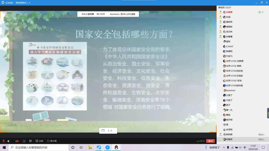 为增强广大学生对国家安全知识、中华民族命运与国家关系的认知,引导学生践行总体国家安全观,3月6日晚,tyc8722太阳集团城组织开展国家安全教育主题班会,班会由各年级辅导员组织开展。