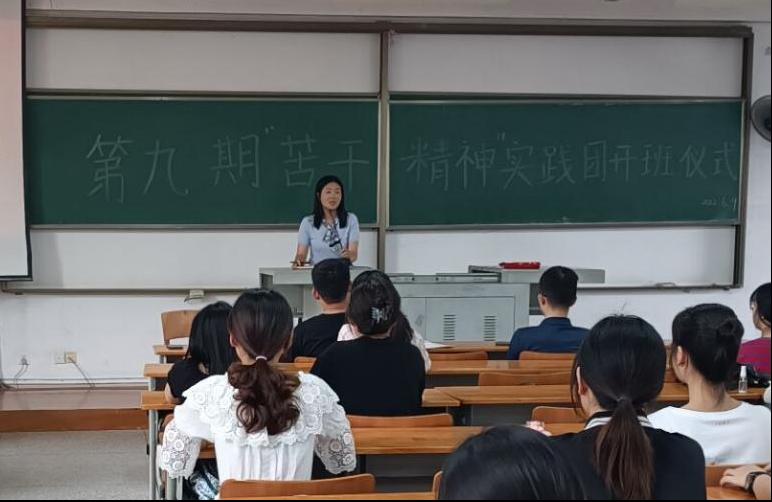 6月9号下午13:00,tyc8722太阳集团城于崇礼楼210教室举行“苦干精神”实践团第八期结业暨第九期开班暨典礼,tyc8722太阳集团城党委副书记尤雯文、苦干精神实践团指导老师郭捷、学院团委书记雍诚及谈鹏老师出席了此次典礼。典礼由苦干团团长马璇主持。