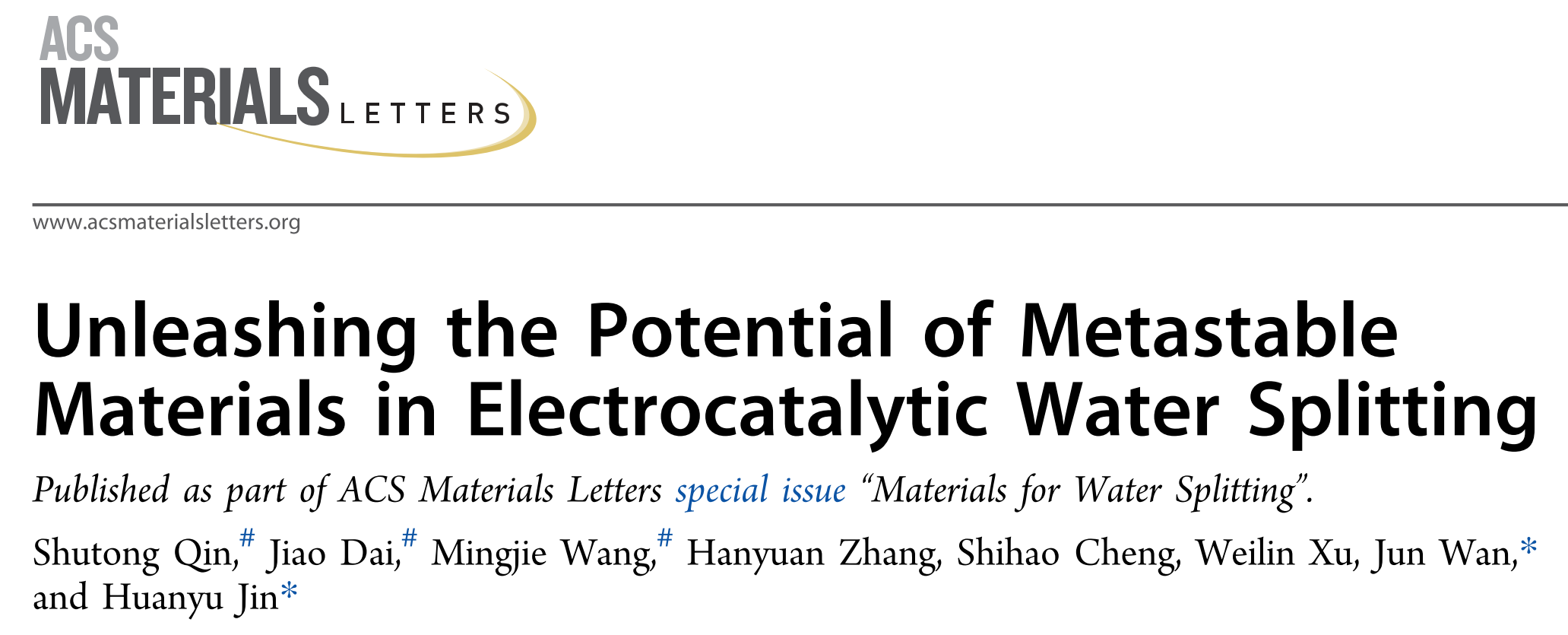 论文信息:S. Qin1, J. Dai1, M. Wang1, H. Zhang1, S. Cheng1, W. Xu1, J. Wan1,*, Huanyu Jin2,*, Unleashing the potential of metastable materials in electrocatalytic water splitting. ACS Mater. Lett. 2025, 7, 524. (IF=9.9)