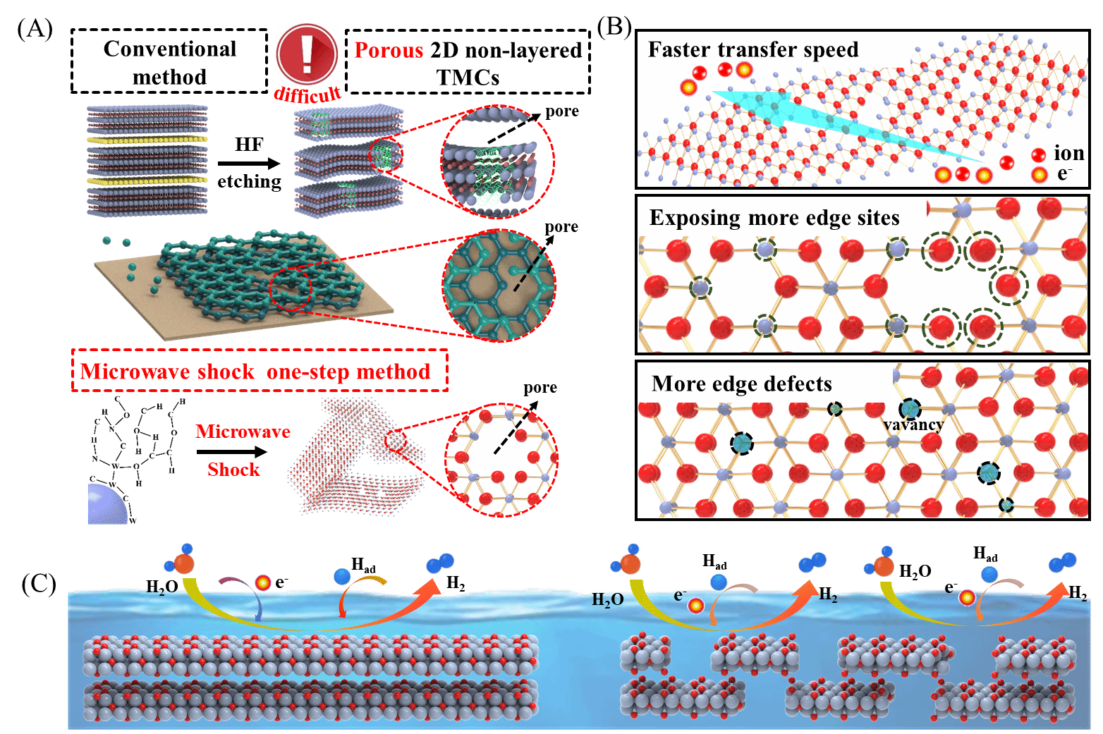 (九)微波热冲法构筑多孔二维非层状碳化物用于高效析氢