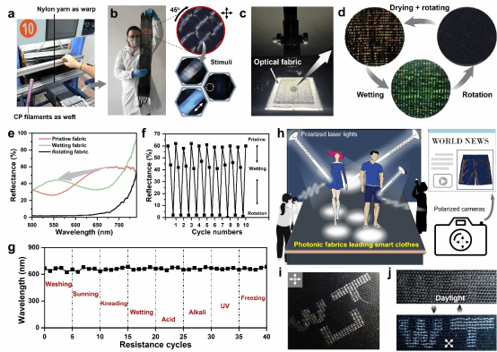 研究成果具有广阔的应用前景:光子长丝可通过标准织机进行纺织加工,适用于手工和机器编织,为智能纺织品和时尚创新领域开辟了新途径(图3)。该技术突破不仅推动了纤维素材料在光子超材料、智能纺织品和偏振软光纤通信等领域的应用,更为可持续发展提供了创新解决方案。