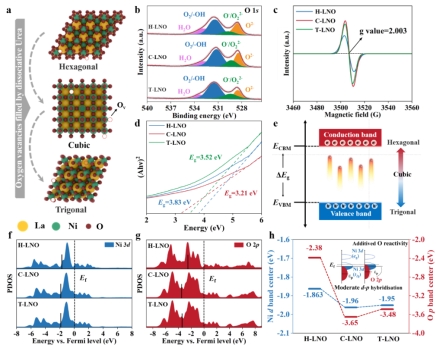 图3 不同晶相LaNiO3的结构特征及其相变对性能的影响。