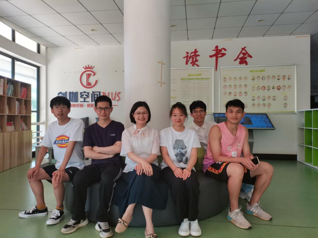 从左到右:孟强(南京工业大学)、邓朝辉(浙江理工大学)、李青老师、雷铭慧(赛得利纤维有限公司)、黄钟珩(广西民族大学)、张国梁(苏州大学)