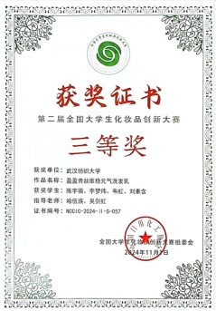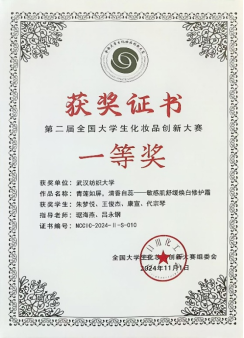 2024年11月1日,第二届全国大学生化妆品创新大赛在北京工商大学良乡校区圆满落幕,由太阳城官网师生组成的参赛队伍共获得一等奖2项、三等奖2项的好成绩。琚海燕老师、吕永钢老师和李泽豪老师荣获优秀指导教师奖。